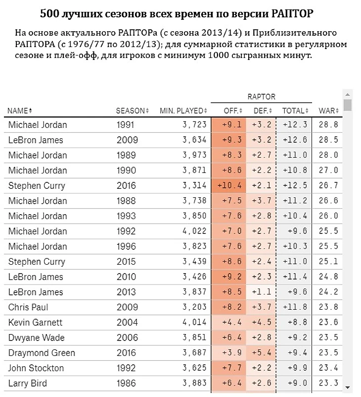 Следующая статья объединит в себе несколько уже прикладных материалов FiveThirtyEight о том, как же все-таки РАПТОР оценивает и ранжирует современных и не очень игроков.