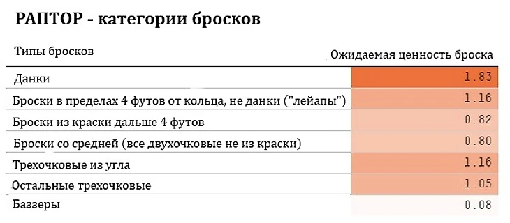 Таким образом, РАПТОР оценивает различные компоненты бросков соперника следующим образом: