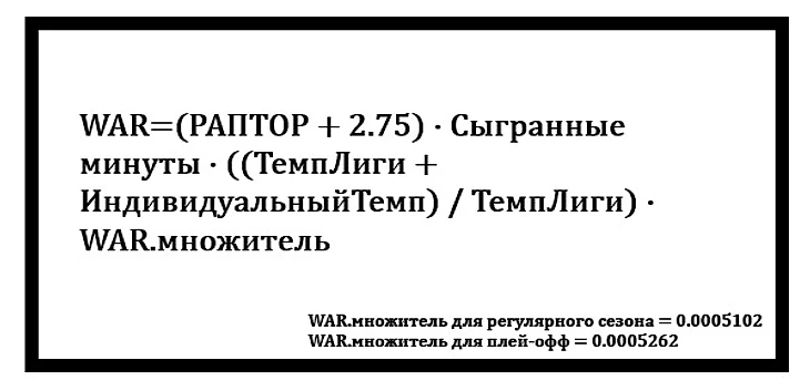 Точная формула, которую РАПТОР использует для расчета WAR, выглядит следующим образом.