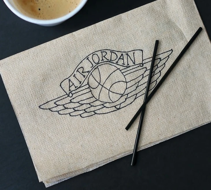 Это натолкнуло меня на идею: я нарисовал крылья, а в центр воткнул баскетбольный мяч. Так получился первый логотип Air Jordan. Как правило, в полете мы много выпивали, поэтому к Портленду нам казалось, что это гениальная идея».