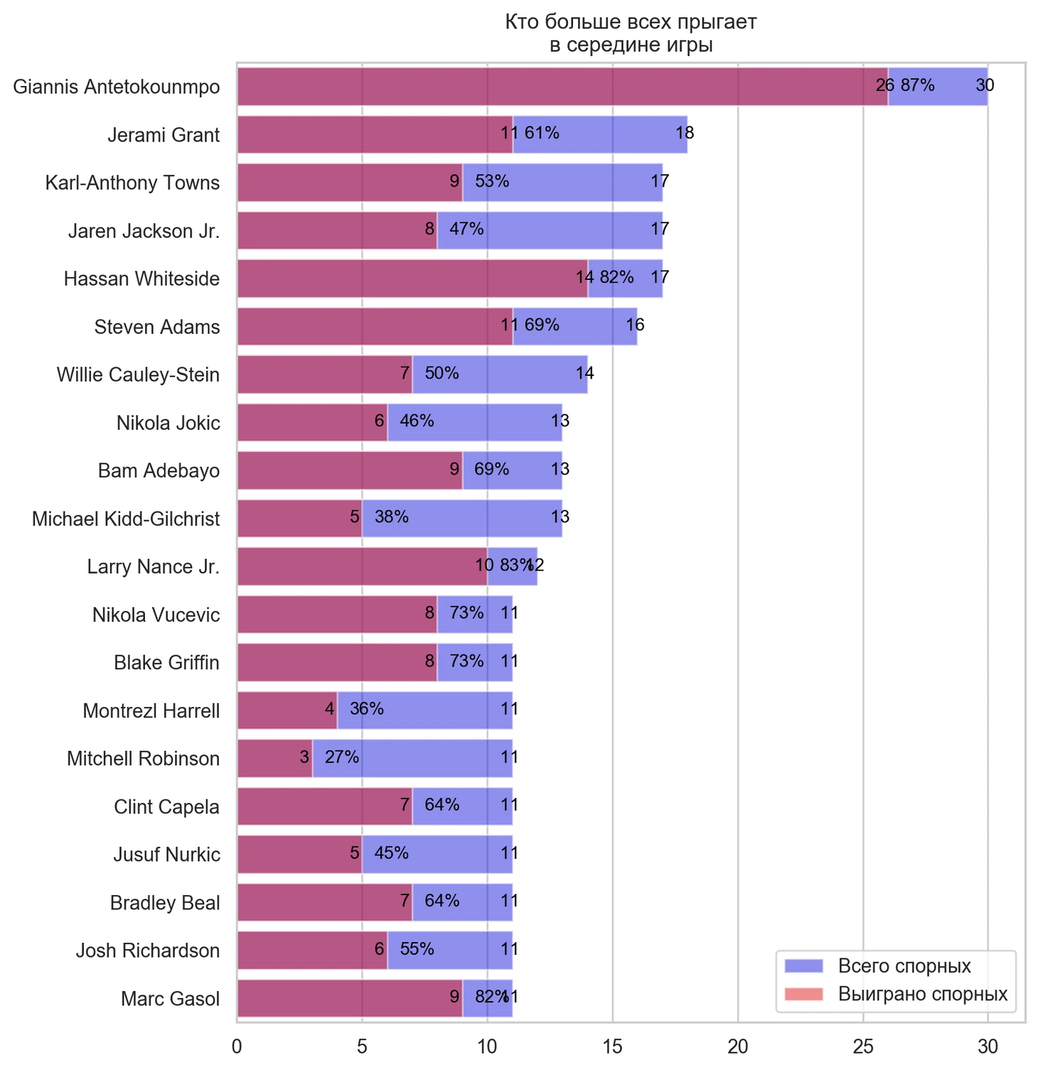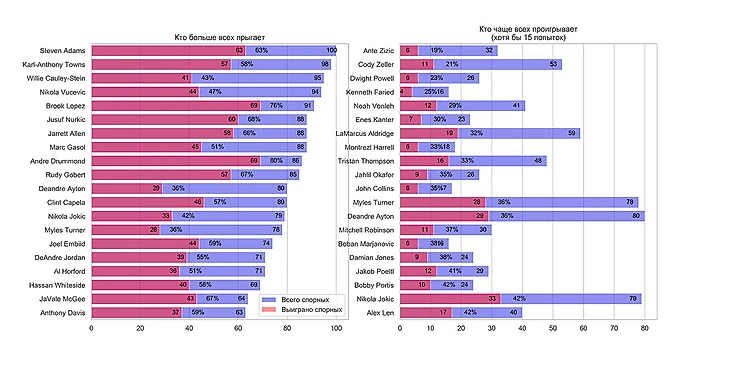 По проценту лидируют Андре Драммонд (скорее ожидаемо) и Брук Лопес (пожалуй, сюрприз).
