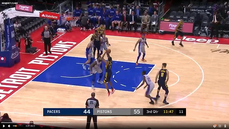 Сценарий встречи был стандартным, до боли знакомым: на большой перерыв команда из города моторов ушла с достаточно весомым преимуществом в одиннадцать очков, однако провальная третья четверть, закончившаяся со счетом 31 на 16 в пользу Индианы, и догонять теперь уже было необходимо Детройту. Как правило, матчи, складывающиеся таким образом, Пистонс сливают, не сумев собраться, но сегодня что-то пошло не так.