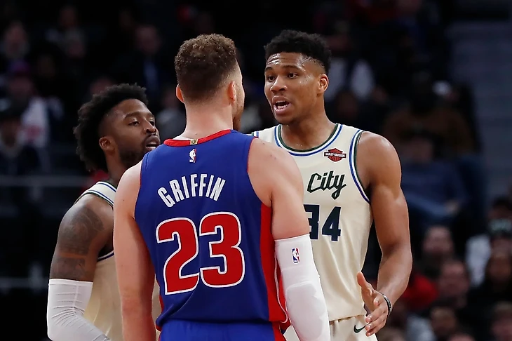 По итогу, у Янниса 35 очков при 4 точных из 8 выброшенных трехочковых бросков и 9 подборов. У Блейка показатели скромнее: дабл-дабл из 16 очков и 10 подборов. Дважды сходились игроки в спорных ситуациях, сначала лицом к лицу после удара Гриффина по челюсти греку. Справедливости ради, что отметили и судьи, наградив Антеконумпо фолом, виноват в этом был сам пострадавший, нарушение правил которым и привело к последующему тычку. Во второй раз заступаться за партнера прибежал Миддлтон, что-то долго втиравший Блейку. В самом эпизоде виноват был скорее Браун, хотя после долгих разбирательств судьи технические выписали всем троим. Видимо, чтобы никому обидно не было. На главной странице ресурса постили новость об этом, акцентировав внимание на перешагивание Гриффином Янниса, как по мне, ничего такого в эпизоде не было, там скорее можно предъявить претензии игрокам Детройта за обоюдный толчок лидера Милуоки в пятую точку.