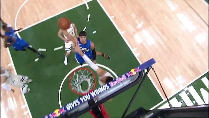 Матч «Орландо» – «Милуоки». Быстрый отрыв «Мэджик». Пас на Аарон Гордона, тот принимает мяч на скорости, ни раз не бьет его в пол, зато знатно лупит в кольцо! Атлетизм зашкаливает.