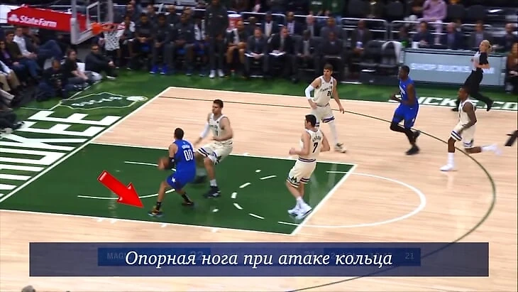 так очень часто делает Леброн, да и многие игроки, у которых длинный первый шаг. судьи смотрят на момент уходя мяча с руки-отрыв опорной.