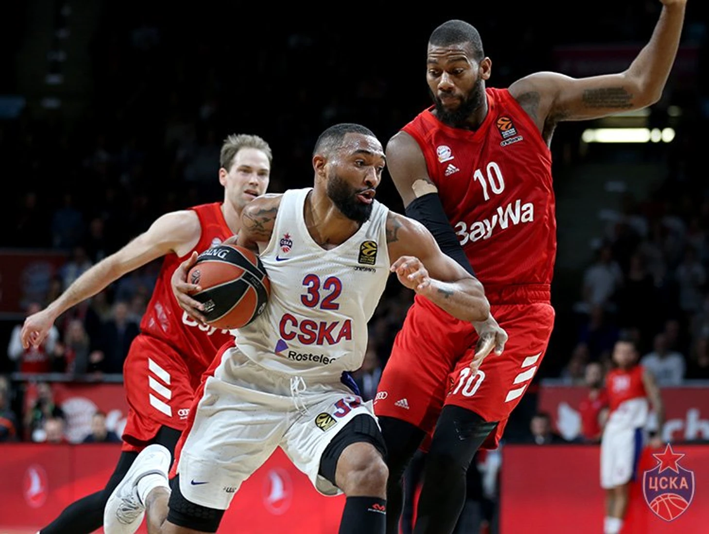 Стратегия забирать мяч через неудачные броски оппонентов – так себе затея, но в первой четверти она работала. Немцы издали выбросили мимо все, что только можно, а в «краске» под армейским кольцом доминировал Хайнс, одним своим видом вызывающий дрожь в немецких руках и коленях. Периодически баскетболисты Баварии что-то придумывали удачное, но воплотить свои идеи системно не могли. Отсюда всего десять набранных очков за четверть – и пропущенных целых восемнадцать.