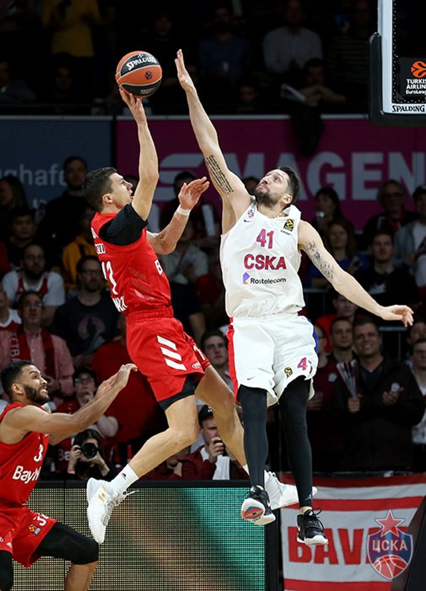 Немецкие баскетболисты, ощутимо подуставшие после своего феерического рывка, преодолеть столь мощный блок не смогли, но надо отдать им должное: среди игроков Баварии постоянно находился герой, который не позволял своей команде уйти в нокдаун, а армейцам – в новый отрыв. Преимущественно им оказывался Хьюстис, но весомый вклад внесли и Лучич с Монро.