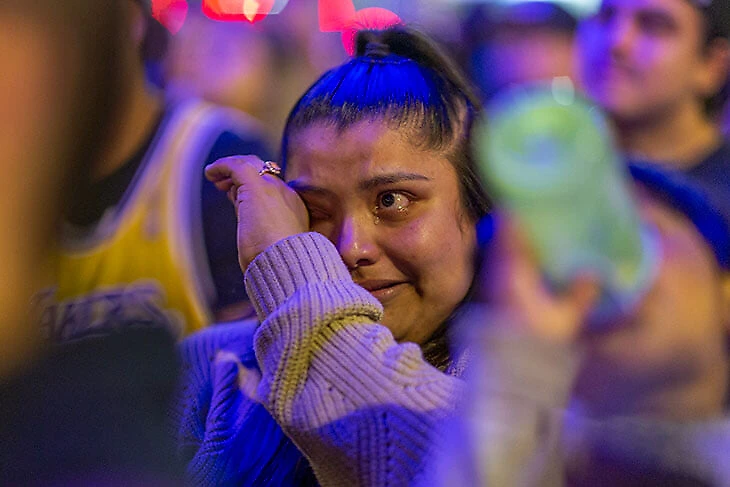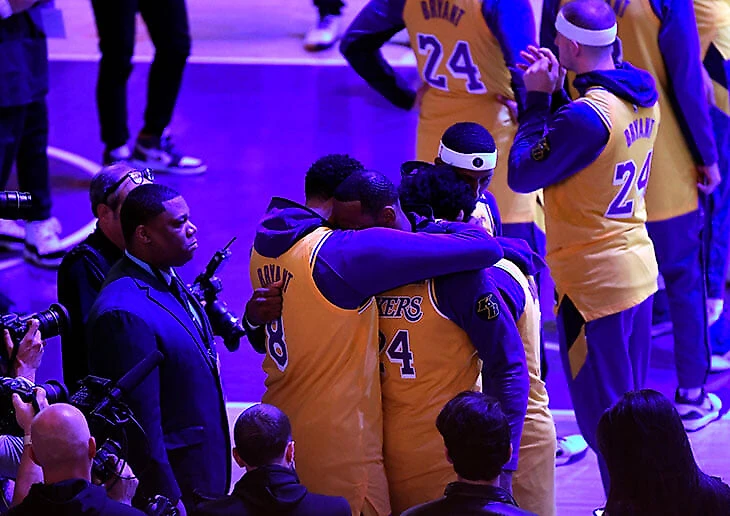 Леброн обратился к трибунам с пронзительной речью на 4 минуты, начав с перечисления имен всех 9 жертв крушения вертолета.