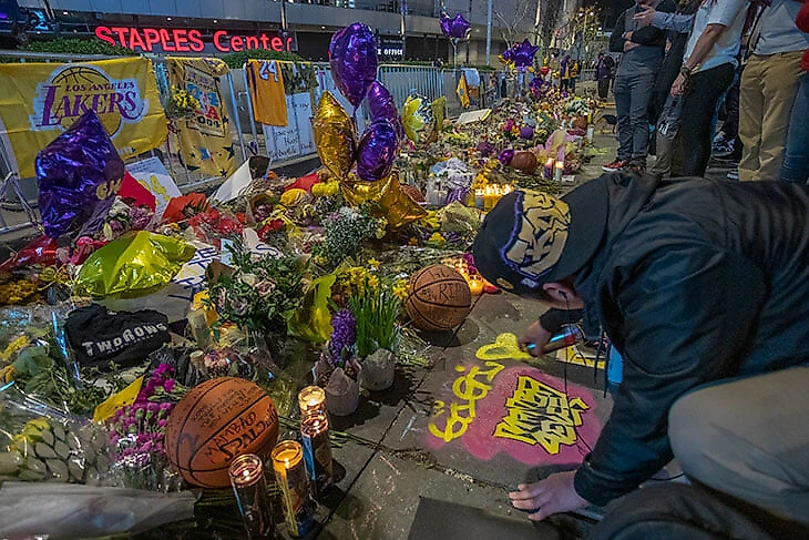 Болельщики всю неделю оставляют у стадиона цветы, открытки, свечи, свою память о Кобе. Руководители комплекса объявили, что все оставленные цветы будут переработаны в мульчу и дадут новую жизнь растениям вокруг арены.