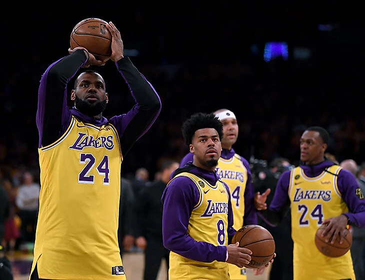 Все игроки «Лейкерс» вышли на разминку в майках с 8-м и 24-м номерами.