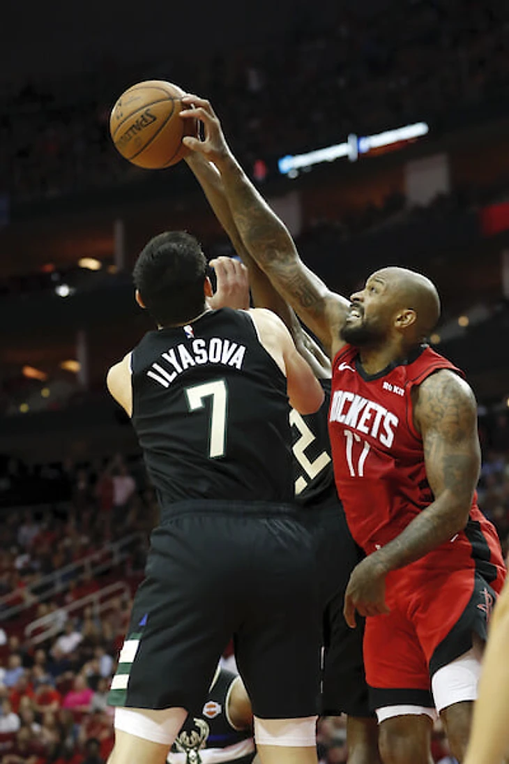 Вот Эрик Гордон 192 против Этони Дэвиса 208. Шансов нет. Вот Дуайт Ховард 210 против Пи Джея Такера 197. Тот же результат. Но это защита «Рокетс» только адаптировалась играть по-новому.