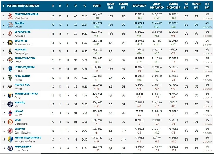 По ходу этой впечатляющей серии перед приморцами, если верить новостям, погасили все задолженности. А благодаря победе «Руны-Баскет» над «Самарой» весну «Спартак-Приморье» встречает на вершине турнирной таблицы — с тем большим интересом ожидается матч лидеров в Самаре 6 марта. К слову, самарцы и приморцы уже обеспечили себе места в плей-офф.