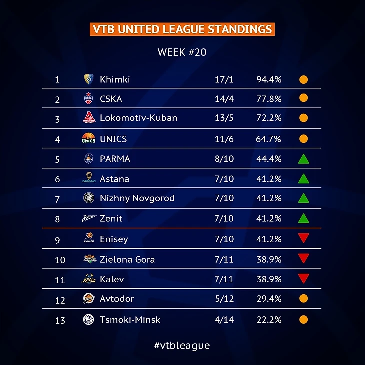 Да, вы не ослышались, за менее, чем два месяца до конца регулярного чемпионата Единой Лиги ВТБ реальная интрига нам не снится, она здесь, развивается и закручивается прямо на глазах изумленных и искушенных болельщиков, во всех отсеках и секциях турнирной таблицы! Только вдумайтесь, разница между пятой командой лиги (8-10) и одиннадцатой (7-11) – всего одна игра! Только два клуба можно назвать относительными аутсайдерам, но даже там не опускают рук и делают все возможное для успешного исхода борьбы за плей-офф.