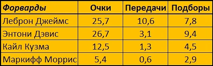 Самая звездная линия обеих команд. Именно противостояние в ней будет наиболее влиять на конечный результат серии. Кавай Леонард, Пол Джордж и Маркус Моррис являются достаточно похожими игроками в плане антропометрии и игровых характеристик. Леброн Джеймс с Энтони Дэвисом и Кайлом Кузмой, в свою очередь, более разноплановые. Дэвис самый высокий среди этих баскетболистов, классический олдскульный четвертый номер, поэтому против него будет сложно защищаться даже таким мастерам обороны, какие есть у Клипперс.