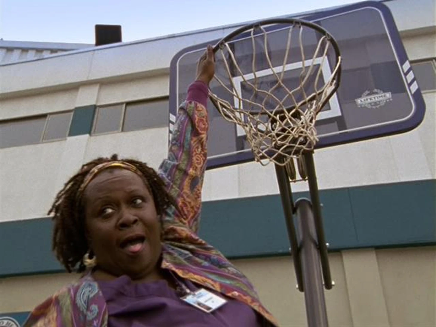 Ворвалась же в первую тройку рейтинга суровая медсестра благодаря одному эпизоду (сезон 2 , серия 17), где обыгрываются стереотипы о том, что все афроамериканцы – хорошие баскетболисты, и соответствующей фантазии Джей Ди. Да, момент с ней, играющей в баскетбол – вымысел, но тут весь сериал не слишком реален, поэтому засчитывается. «Зато у вас (белых) есть хоккей!»