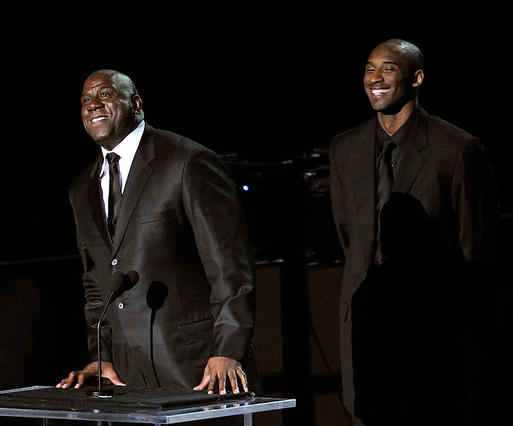Впрочем, несмотря на явное последующее копирование Эм Джея, в детстве кумиром Кобе был Мэджик: «Очень хотел увидеть его вживую. Обожал его любовь к игре. Ну и, конечно, сходил с ума от его передач». Неудивительно, что плакат Мэджика висел в комнате Кобе на самом видном месте. Что, конечно, многие посчитали ироничным. Как-никак, по стилю игры двух легенд «Лейкерс» практически ничего не связывало.