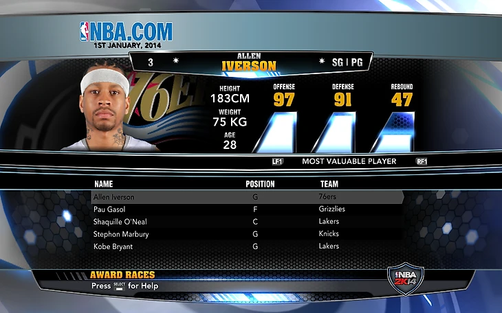Айверсон абсолютно заслужено лидирует. 29ppg + 3.7 rpg + 5apg + 1.6spg и все это при 0.538 fg. Ответ забивает больше половины с игры, С ИГРЫ КАРЛ!!!