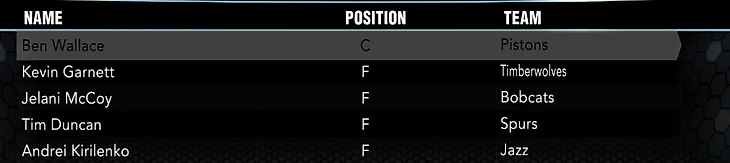 По опыту, обычно защитным игроком становится кто-то из фронткорта. Наверняка в игре какой то механизм, который приоритетом учитывает блоки и чуть меньшим приоритетом перехваты. Не место же в таблице Jelani McCoy(привет Шарлотт 6-26).