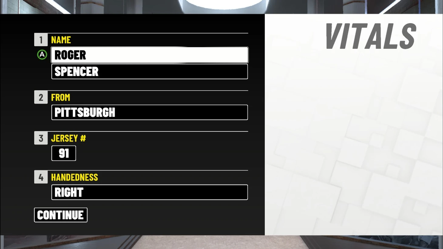 Играть я буду за мужчину по имени Роджер Спенсер из прекрасного города Питтсбург, штата Пенсильвания. Да я ему даже номер майки придумаю. Пусть будет, 91.