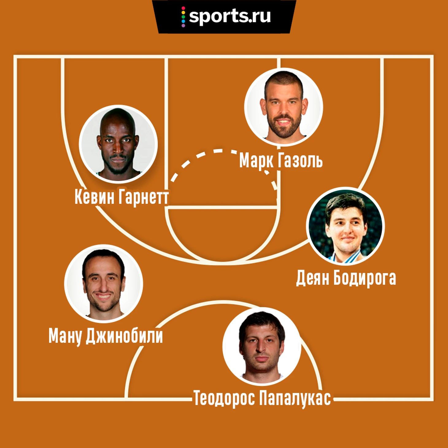 Я застал только самые последние сезоны Джордана, Хакима, Сабаса, поэтому не могу включить их в сборную. Из суперзвезд НБА моей эры любимая – Кевин Гарнетт (любимый просто игрок – Майк Бибби, но начинать строить команду с него как-то странно). Конечно, Леброн, Кобе, Тим, Шак добились большего за свою карьеру, но моя идеальная версия баскетболиста – это Гарнетт-2004.