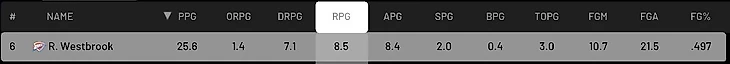 На Западе лучшим игроком месяца стал Вестбрук с такой статистикой: