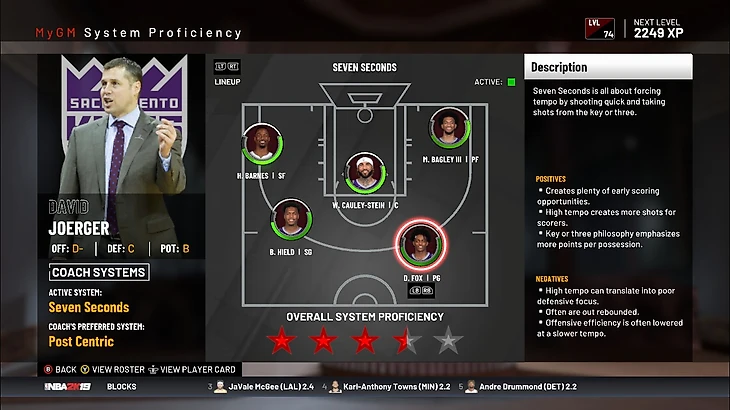 Суть такова, что данная стратегия не очень подходит Сакраменто. Она рассчитана на более высокий состав. Вспомните, какой темп по лиге у них был в прошлом сезоне. Поэтому, перебирая варианты, я нашел более подходящий план на игру для команды и на весь декабрь я устрою эксперимент команде. Выбор был между Pace & Space или любимую всеми фанатами Хьюстона Seven seconds. Но я решил дать шанс системе Хьюстона заиграть в нашей команде. Если не даст результатов, то январь потратим на Pace & Space.