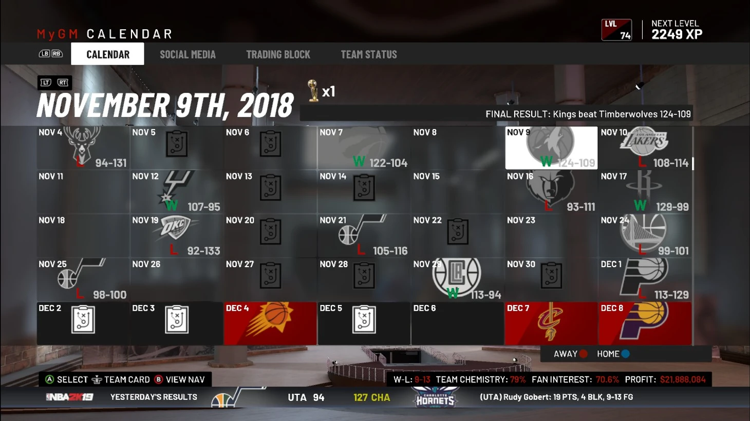 My NBA2K19: первые просмотры новичков и результаты работы ноября