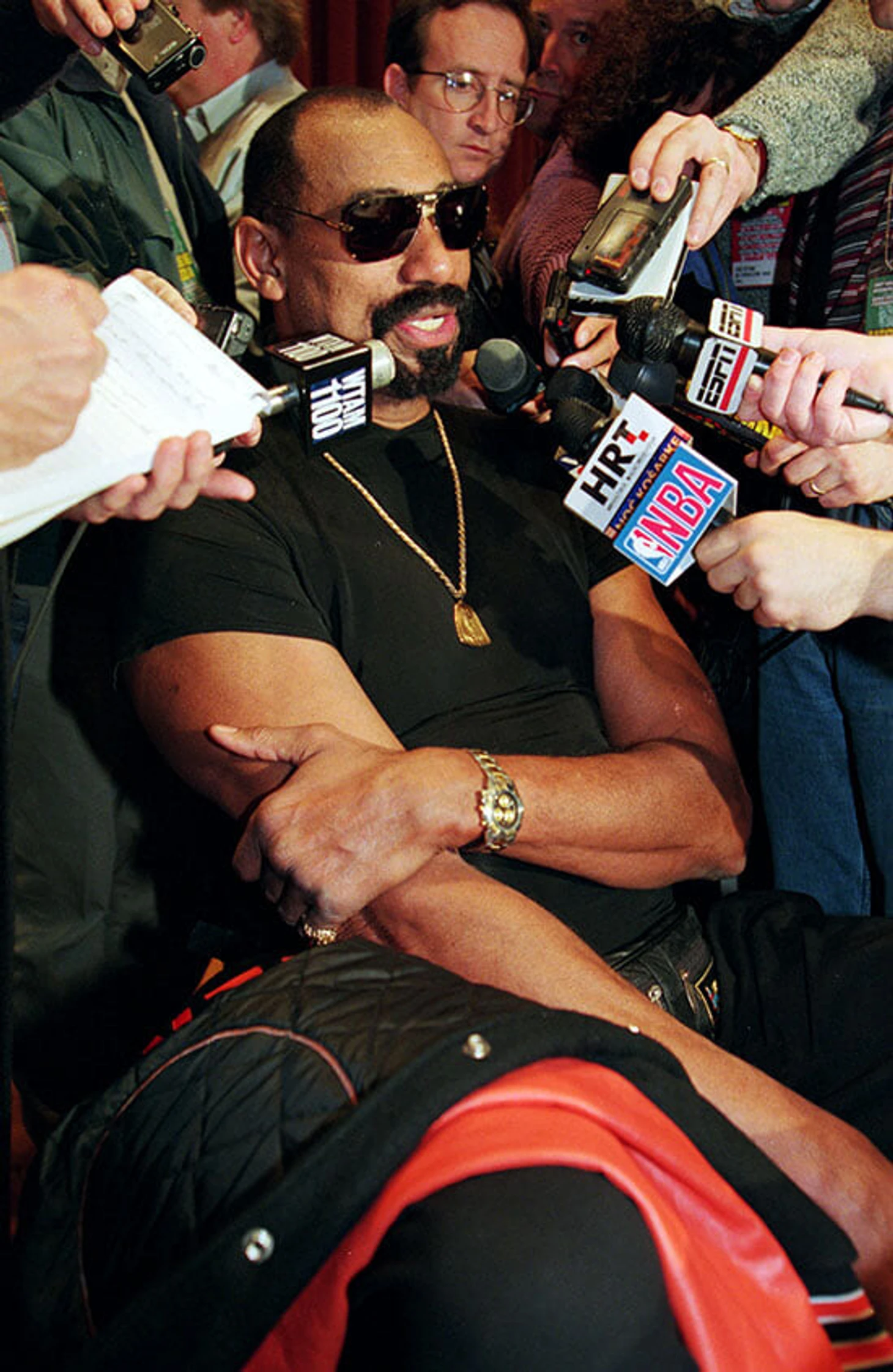 Деннис Родман, как мне кажется, тоже попал в список не совсем как игрок. Я не пытаюсь отобрать у Родмана его уникальность, но утверждаю, что его наследие и статус единорога частично опирается на его образ и историю. Родман отпечатывается в голове как персонаж так же сильно, как и игрок. Крашеные волосы, серьги, татуировки, наряды, Мадонна и вечеринки – все вот это вплоть до фразы «Совсем не маскируется» из «Людей в черном». Проблема в том, что сравнивать персоны тоже невозможно.