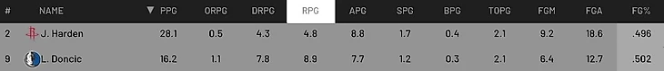А вот и лучшие игроки месяца: на Западе ими стали Джеймс Харден и Лука Дончич. Их статистика ниже.