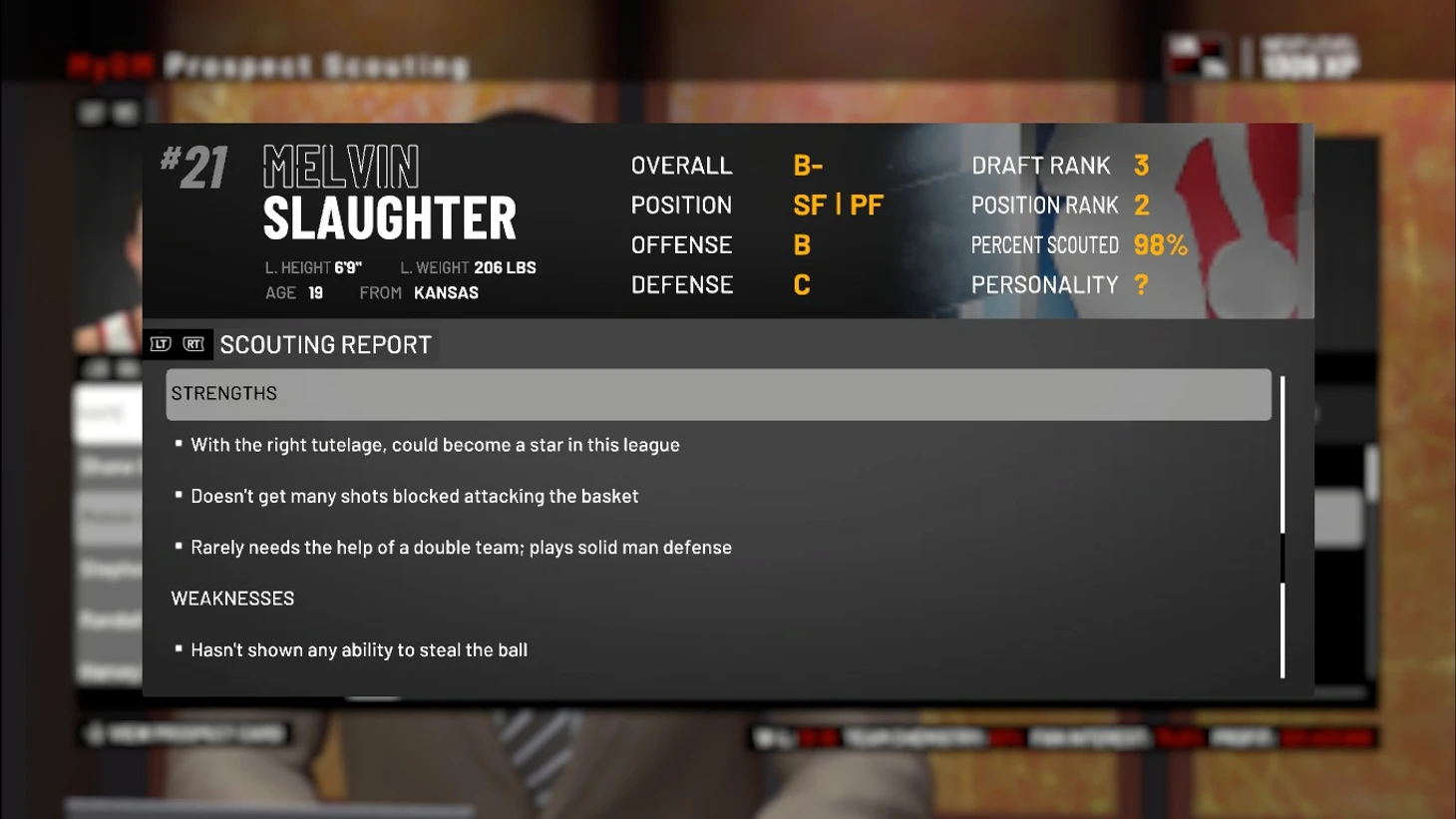 А вот теперь можно совсем чуть-чуть поговорить о новичках. Поскольку мы выбрали нашей целью легких форвардов, то не показать лучших новичков этой позиции я не мог. Среди них есть достойные ребята, но мое внимание привлек вот этот молодой человек из Канзаса.