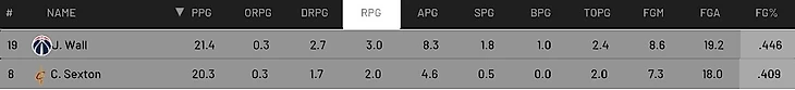 А на Востоке это Джон Уолл и Колин Секстон(это же симуляция, даже он может стать лучшим). Их статистика ниже.