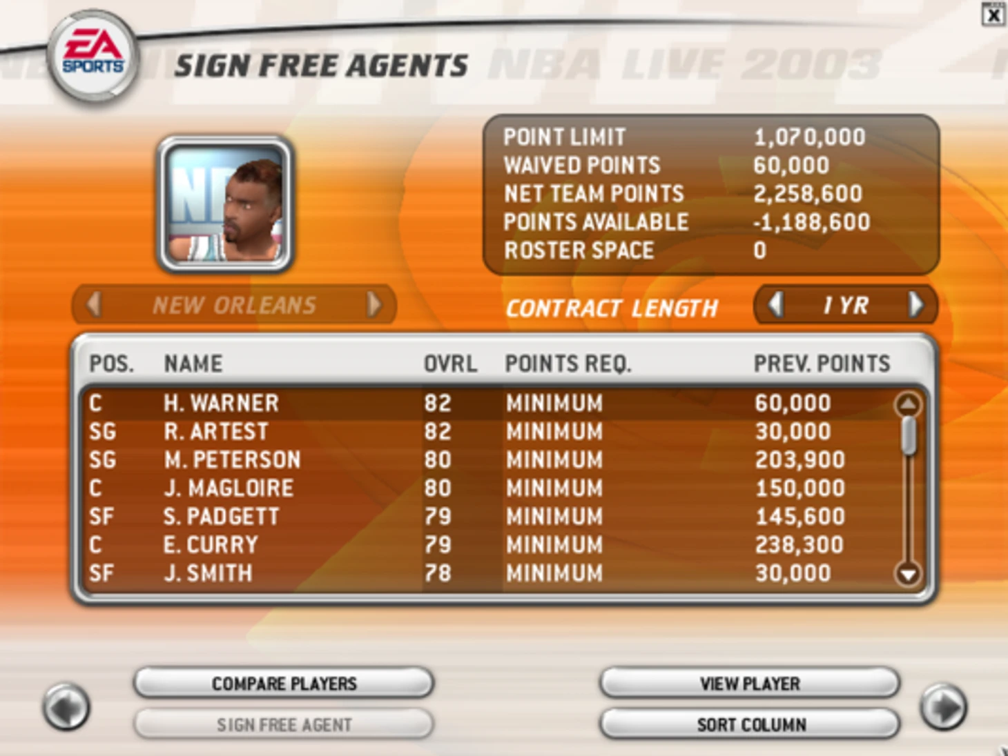 После первого в истории чемпионства проходит самое тусклое межсезонье «Нового Орлеана». Все мои игроки продлены, на драфте к моему пику никого не осталось, места под потолком нет. «Баскетбольное лето» для меня начинается в октябре, прямо перед первой игрой, когда за минималку нужно подписывать контракты с теми, кто не продлился со своими командами.