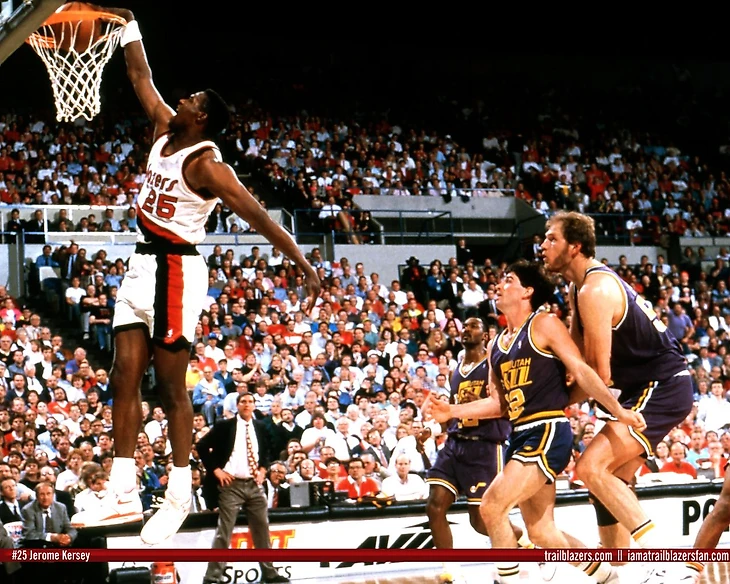 В этих двух примерах несоответствия вывески и содержанию нет вины Портленда. Не орегонская франшиза выкладывает матчи на пиратские сайты; только в страшном сне и Дрекслеру, и всему Портленду захочется вспоминать Джордановское насилие, такое типичное для лиги и такое нетипичное для первой половины первого матча Финала НБА. Просто так сложилось, что и в Финале 1990 года, в котором встретились два коллектива без суперзвезд, которые находятся на самой-самой вершине горе иерархии НБА, мои симпатии были на стороне команды Востока – я был с ней знаком уже не первый финал и «проблемы» Плохих парней стали моими проблемами. Портленд предстал отличной командой, но из всех заинтересовавших своей личностью игроков мне захотелось узнать о дальнейшей судьбе лишь Джерома Керси – оказалось, что 1990й был пиком карьеры этого взрывного и атлетичного легкого форварда, который колотил в Финале мощные данки, когда это еще не было повсеместно принято. Джером в качестве глубоко резервиста успеет захватить гайки в «сезоне со сноской» в составе Сан Антонио Сперс, но лучшие годы своей карьеры Керси, безусловно, проведет в Орегоне – 11 отличных лет как для 46 выбора на драфте с пиком в первом из финалов Блейзерс. Я не обращу на это внимание на его странице в Википедии, потому что сразу ринусь к цифрам, статистике – но я увижу это в комментариях на youtube под нарезкой данков Джерома – Керси умрет в Орегоне от закупорки легочной артерии в возрасте 52 лет.