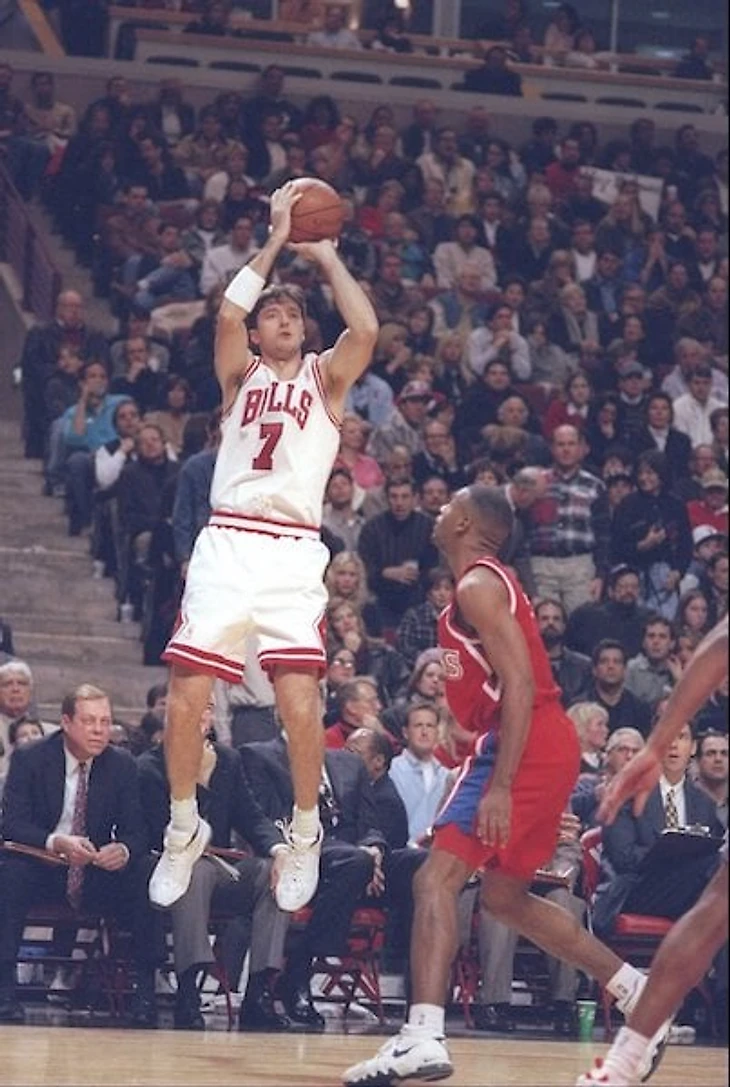 В первом сезоне после возвращения Майкл с улыбкой подошел ко мне, Стиву Керру и Джаду Бушлеру после одной из первых тренировок. Мы уже играли с ним весной до это, но пока еще не узнали его хорошо.