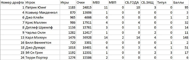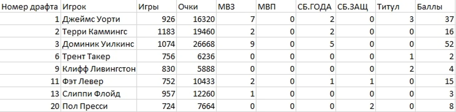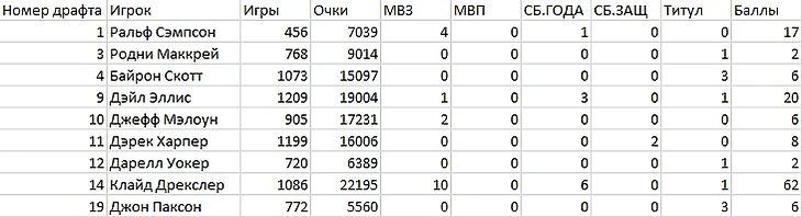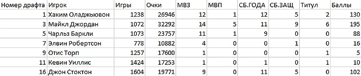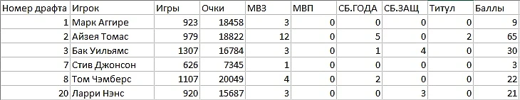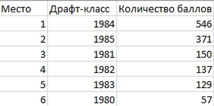 Подводя итоги первой шестерки, составим рейтинг этих драфт-классов также в виде таблицы.