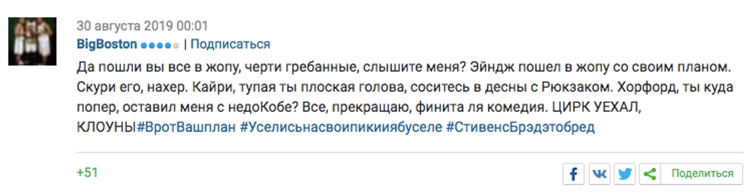 Часть карточек писалась одинокими вечерами под пивко, поэтому тут МНОГО текста. Так как форматирование Спортса само натягивает размер изображений, местами это все превращается в наблюдение за муравьями из иллюминатора самолета. Могу посоветовать тем, кто не хочет терять зрение – заходите на наш канал в телеграме и растягивайте картинки, как ПЖ Такер оборону соперника. Стоит ли их содержимое ваших усилий? Ну, тут думайте сами.