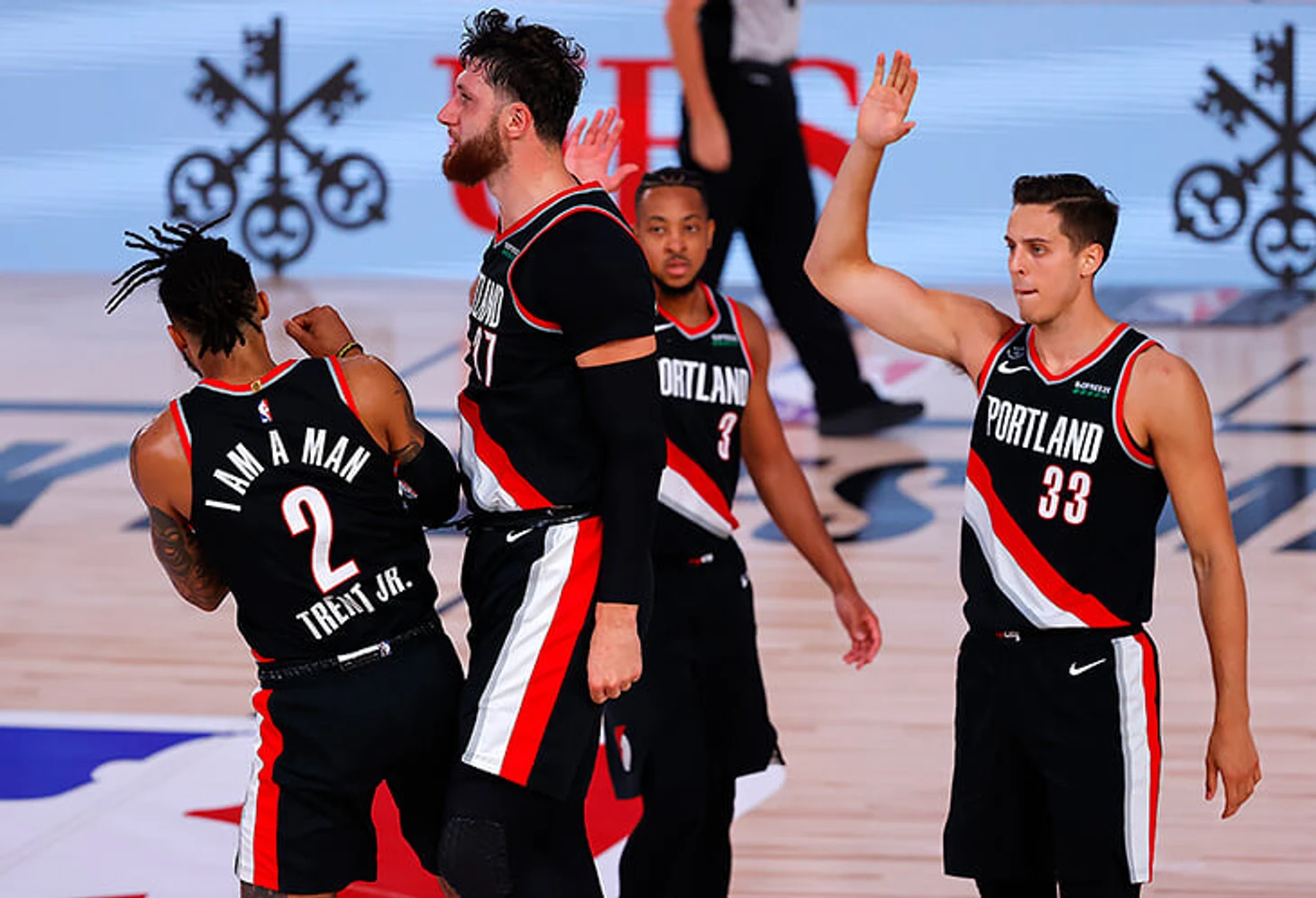 Вообще Трент был приятным сюрпризом еще в основной части сезона. Он появился как бы из ниоткуда и был очень полезен для «Портленда» со всеми их проблемами с составом. Гэри хорошо защищался и точно бросал. Это уже набор навыков миллионов на 10 млн в год. Но в «пузыре» игровое время и роль Трента выросли. Он стал играть больше, а его привычные броски с получения дополнились трехочковыми с ведения. В итоге его 4 трешки за матч превратились в 9, а 39% из-за дуги – в 62%. Конечно, ожидать такого уровня на длительной дистанции не стоит, но даже те же 38-39% при 7-8 попытках за матч на таких бросках и при такой защите это очень высокий уровень.