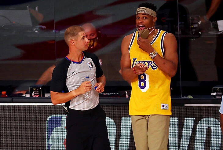 Леброн прибыл на игру против «Портленда» как раз в такой майке – с 24-м номером на спине, с 8-м номером спереди. В этих черных майках City Edition «Лейкерс» и сыграли сегодня (и, возможно, продолжат надевать – Леброн вообще обожает играть в плей-офф в черном). Вообще правила лиги запрещают использовать расцветки, не утвержденные до старта сезона, а в качестве четвертого комплекта City Edition в этом году были заявлены формы в честь Шака. Но никто не станет сейчас заниматься таким глупым формализмом в Mamba Day.