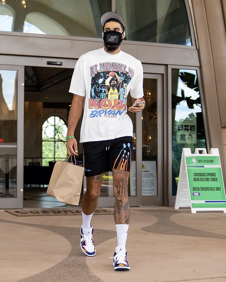 Форвард «Бостона» Джейсон Тейтум пошел дальше и даже нарушил дресс-код НБА, когда надел фиолетовую (не в клубных цветах) повязку на руку в честь своего кумира. Конечно же, никаких санкций за это лига не стала накладывать.