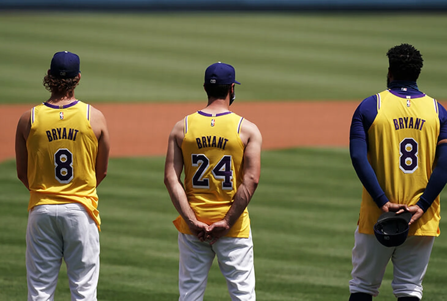 О Кобе вспоминали и в других видах спорта. Вот так бейсболисты «Доджерс» вышли вчера на свой матч: