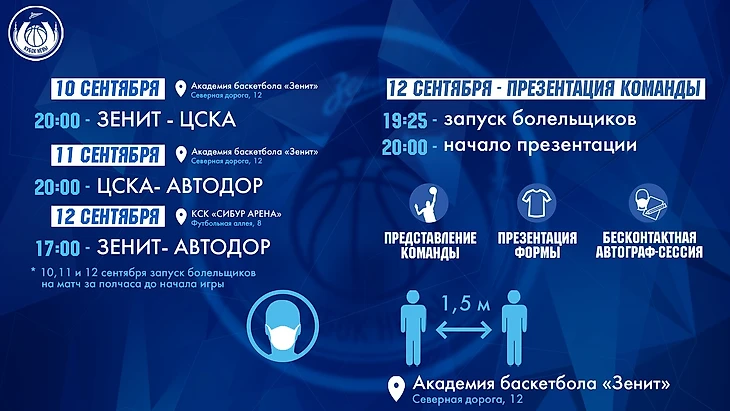 На нашем сайте и в наших социальных сетях болельщики смогут найти правила, по которым они попадут на игры. Все необходимые нормы Роспотребнадзора мы будем соблюдать на все 100%. У нас будет и чистая зона, у нас будет и соблюдена социальная дистанция, и все остальное будет сделано так, чтобы минимизировать риски заболевания как команд, так и болельщиков. Первые две игры будут проводиться в академии баскетбола «Зенит», где количество посадочных мест ограничено, поэтому попасть на эти две игры смогут только меньше сотни болельщиков. Болельщиков мы выбираем из тех, кто приобрел сезонные абонементы. Об этом мы говорили, когда объявляли старт продажи билетов и сезонных абонементов. Так что это такая особая привилегированная категория болельщиков. Мы распределяли их на три дня, в каждый день болельщик должны были смотреть по две игры. Но теперь ввиду изменения формата мы даем возможность и первым двум частям болельщиков побывать и на третьей игре, которая состоится уже в «Сибур Арене». К слову, в субботу сразу после игры с «Автодором» у нас состоится презентация команды. Начнется она в 20:00 в академии баскетбола «Зенит». Хоть она и будет бесконтактной, но мы дадим возможность и сфотографироваться с игроками, и получить автограф. Кому не удастся попасть на эту презентацию, тот сможет посмотреть прямую трансляцию.