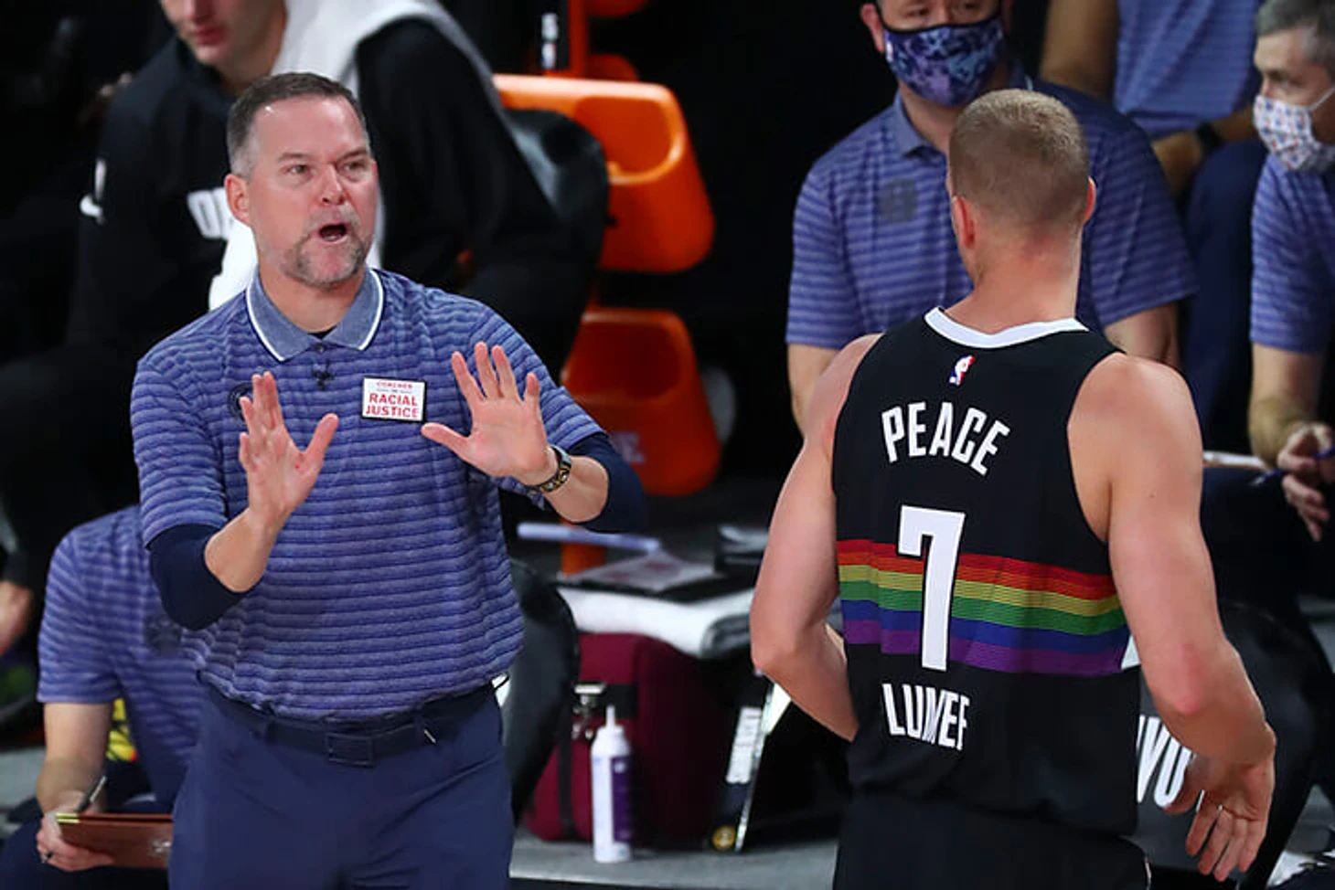 Первая – фирменное сдваивание на пик-н-ролле. Пару лет назад Мэлоун придумал эту схему, чтобы минимизировать ущерб для обороны от Йокича. В такой формации от Николы не требуется особая боковая подвижность, ему не нужно размениваться и показывать чудеса подстраховки под кольцом. Его слабые места прикрыты.
