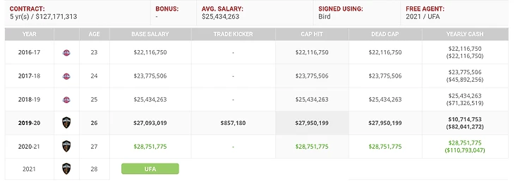 28 миллионов зеленых "капнет" на его счет за сезон 20/21, если центровой решит использовать свою опцию. Сделает ли он это? Скорее да, чем нет потому что из-за снизившегося (из-за коронакризиса) потолка зарплат в НБА никто прямо сейчас не сможет, да и не захочет(кроме Кливленда наверное) дать столь медленному и по-баскетбольному "старому" центровому большой контракт.
