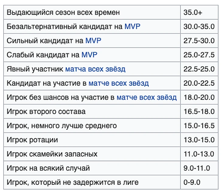 PER--рейтинг эффективности действий баскетболиста на площадке. Формула дико сложна(если интересно--гугл в помощь), поэтому стоит ограничиться обозначением как эта цифра в принципе отражает скилл игрока: