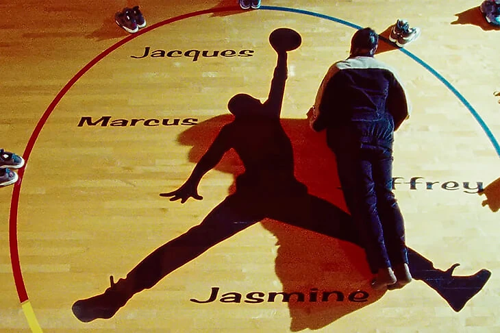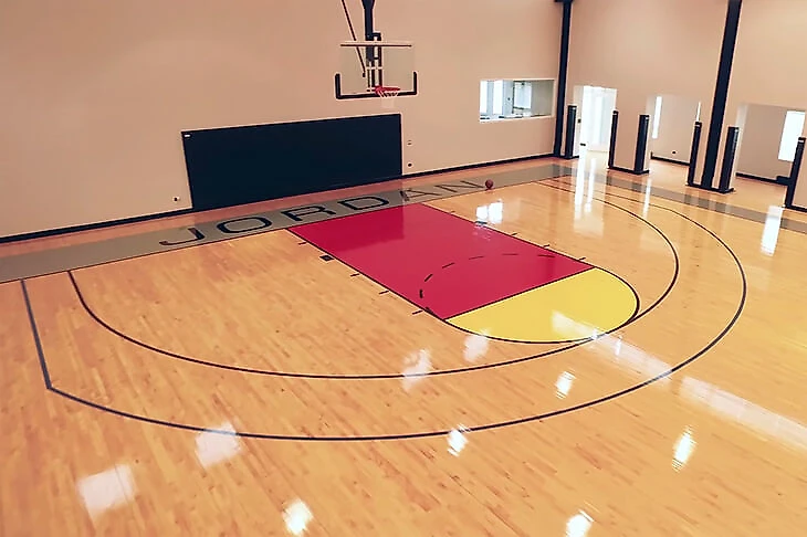Старая площадка Джордана. В ее центре расположен логотип с прыгающим человеком, а по бокам нанесены имена детей: Маркуса, Джеффри и Жасмин (Скотт поставил сюда же собственное – настоящее – имя «Жак»).