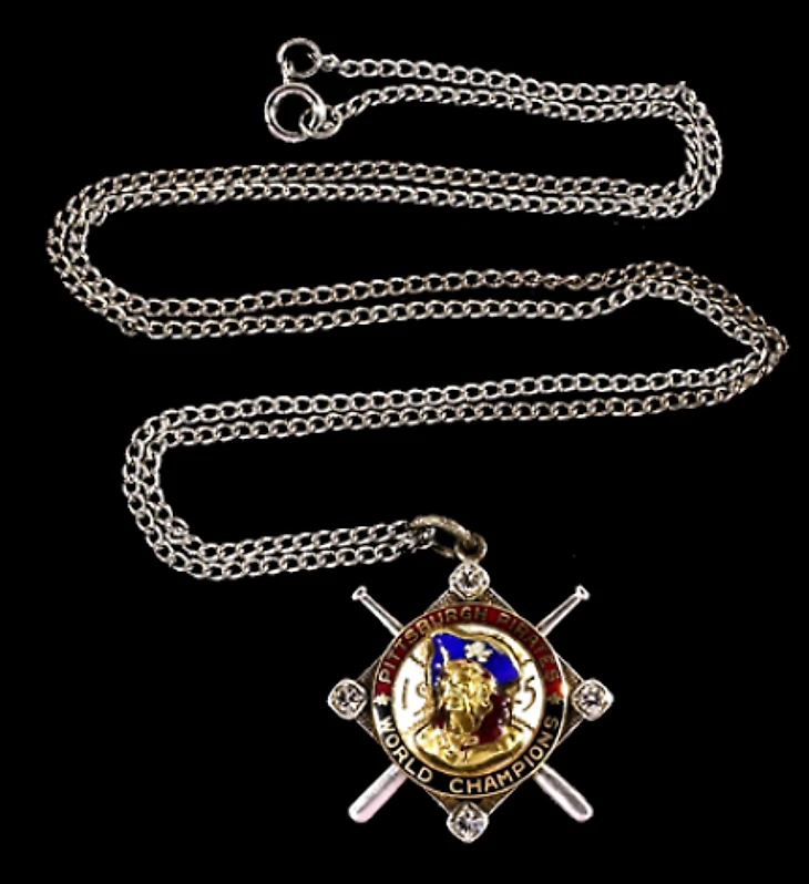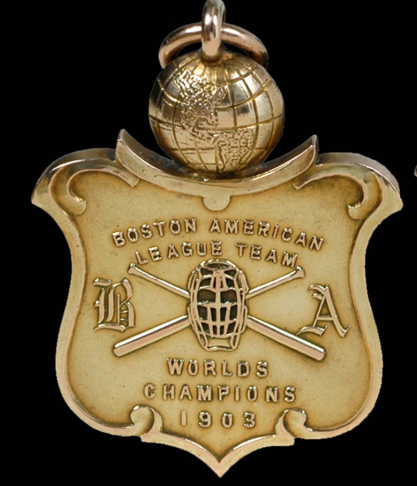 Изначально здесь тоже вручали памятные призы: значки, карманные часы с гравировкой, цепочки для часов, медали… Так было до появления World Series, так осталось и после: в первом сезоне – в 1903-м – «Бостон Американс» (впоследствии «Ред Сокс») получили вот такую замысловатую бляху.