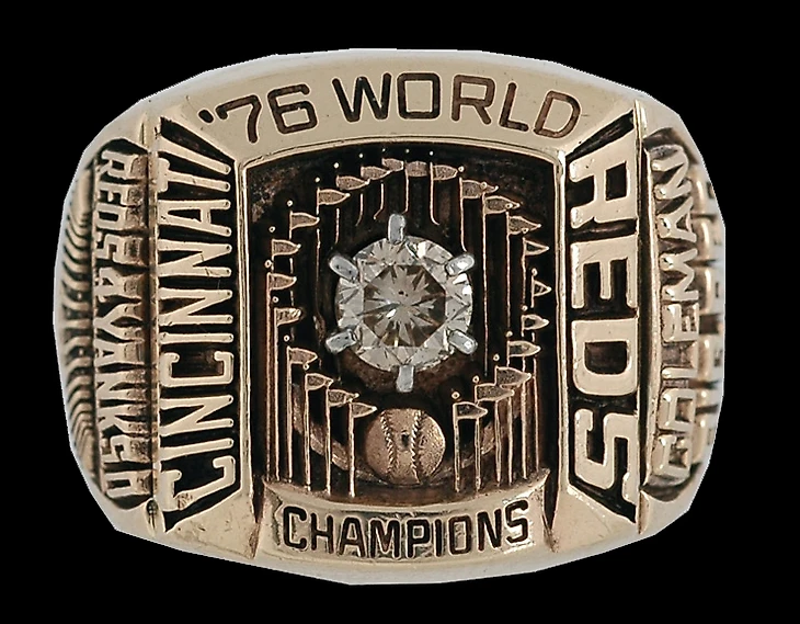 На верхней части перстня «Цинциннати Редс» в 76-м впервые появляется чемпионский кубок.