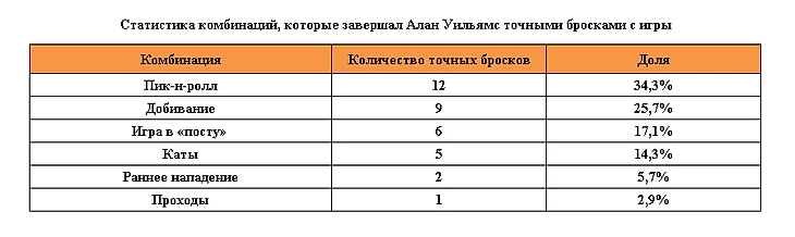 Во многом это можно удобной для баскетболиста системой нападения краснодарцев. Если мы посмотрим на статистику, то увидим, что больше всего очков американец набирает с помощью пик-н-роллов.