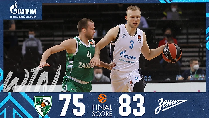 «Тактически вы готовы, физически тоже, осталось добавить запредельную мотивацию и желание победить», — такими словами напутствовал Хавьер Паскуаль своих подопечных на утренней тренировке перед матчем с «Жальгирисом». Желание и мотивация — действительно то, что необходимо в игре против литовской команды. Она потерпела четыре поражения в последних четырёх матчах Евролиги и на своём паркете точно хотела реабилитироваться и вернуться на победный путь. В стартовой пятёрке Мартин Шиллер выпустил следующих игроков: Жоффре Ловернь, Паулюс Янкунас, Мариус Григонис, Стив Вастурия и Томас Волкап. Хавьер Паскуаль решил бросить в бой тех же баскетболистов, которые начинали матч с "Басконией" - Пангоса, Холлинза, Гудайтиса, Томаса и Понитку. Со средней открывает счёт Ловернь. Остаются подборы в защите за литовцами: всего один подбор в нападении забираем себе в первой десятиминутке. Петербуржцы начинают матч в роли догоняющих. Выходит на площадку Денис Захаров и набирает свои первые очки в Евролиге! Отдельно хочется отметить, пожалуй, самый яркий момент в исполнении «Зенита» в первой четверти — перехват Холлинза и его же амплитудный данк. После этого Холлинз просто ловит кураж: «трёшка» и пять точных штрафных из пяти! 11 очков за этот отрезок, заканчиваем его со счётом 15:23. Начинаем вторую четверть с дальнего от Кей Си Риверса и продолжаем увеличивать отрыв: два двухочковых от Андрея Зубкова, трёхочковый от Кевина Пангоса и на табло уже 19:33 и "+14" преимущество «Зенита». Интенсивная игра с минимальным количеством остановок — именно такой матч и ожидал Хавьер Паскуаль. Меньше чем на 9 очков «Зенит» хозяев не подпускал. А самым эффективным игроком первой половины встречи стал Кевин Пангос — трёшка, перехват, ассист, подбор в защите, заработанный на себе фол, ещё ассист, двухочковый, ещё трёха — и это всё только во второй четверти! Всего 8 очков, 3 результативные передачи и 13 баллов полезности за две десятиминутки. Уходим на перерыв с преимуществом в +13 очков — 32:45. В перерыве в интервью Хавьер Паскуаль отметил, что «Жальгирис» обязательно станет играть интенсивнее. Об этом сказал и главный тренер литовцев Мартин Шиллер ("играть агрессивно - ключ к тому, чтобы перевернуть ход матча"). Четырьмя трёхочковыми увеличивают преимущество «Зенита» до "+23" Холлинз, Пангос, Томас и Понитка — 34:57. Григонис и Янкунас пытаются сократить отставание — в сумме на двоих за 3 минуты набрали 6 очков. Только после двухи от Ловерня преимущество «Зенита» стало меньше 20 — 45:63, на что Хавьер Паскуаль отреагировал тайм-аутом. Однако «Жальгирис» сдаваться не собирается: ещё по два очка от тех же Ловерня и Янкунаса, два точных штрафных от Милакниса и превосходство «Зенита» тает — 51:66. Продолжает терять «Зенит» наработанное преимущество и в заключительной четверти и всё благодаря Найджелу Хэйсу, а Рокас Йокубайтис и вовсе сделал "-8" — 62:70 за 6 минут до конца матча. Концовка матча, как говорится, точно не для слабонервных: петербуржцы пытались вернуть прежний отрыв, но «Жальгирис» наседал с помощью Григониса, Йокубайтиса, Рубита и Хэйса— 75:83 за минуту до конца матча. Тем не менее, нашим парням счёт удалось сохранить! Записываем себе третью победу подряд в Евролиге! Главный тренер БК "Зенит" Хавьер Паскуаль: - Я очень рад сегодняшней победе. Мы показали одну из лучших наших игр в это