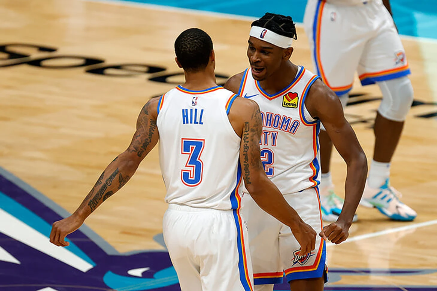 Шэй Гилджес-Александер, казалось бы, остался единственной звездой и получил в свои руки команду, но даже здесь нет никаких тектонических сдвигов. Вопреки ожиданиям его количество бросков и результативность вообще не изменились. Формально он стал практически вдвое больше бросать издали (6,3 вместо 3,6 за игру) и ровно вдвое больше пасовать (6,7 вместо 3,3). Но в реальности это пока никак не изменило его игру: основные очки он все так же набирает в тягучих проходах за счет прекрасного контроля своего долговязого тела, а передачи — это в основном простые скидки из тех же проходов после сдваиваний. Классического звездного заднего, который ведет игру, бросает по 20 раз и плюется трехами с ведения в лоб из него пока (к счастью или сожалению) не получается.